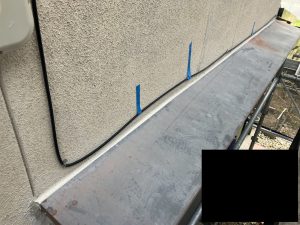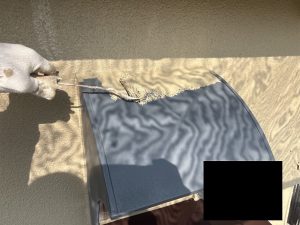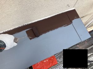 こちらは庇の下塗りです。庇等の鉄部には錆止め効果のある下塗り材を塗布します。