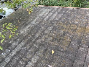 経年により色褪せしており、藻や苔の発生もしておりました。スレート瓦は主成分がセメントである為、塗装の防水性能が切れると水を吸収し、藻や苔の発生に繋がります。