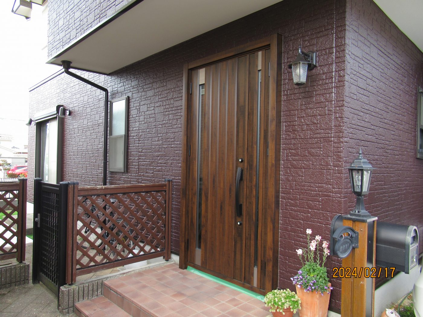 施工後外壁ともマッチする玄関で、非常に素敵な仕上がりになりました!お家の顔とも言える玄関が綺麗になると本当に新築のように感じられますね。この度はありがとうございました!